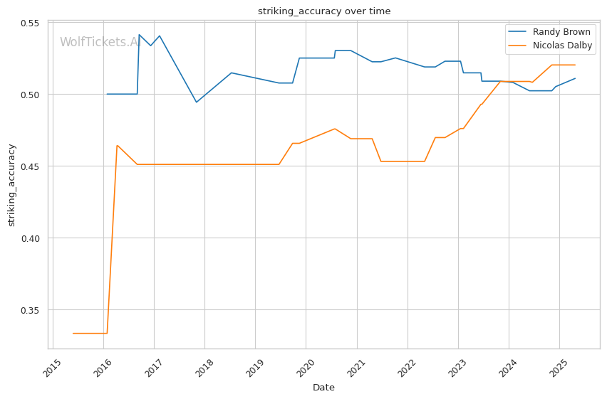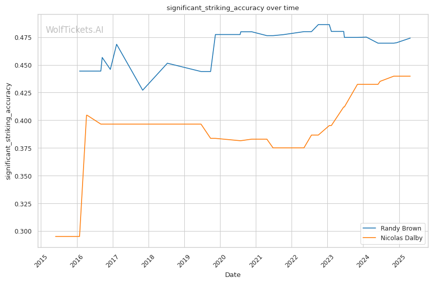 | Significant Striking Accuracy | 47.42% | 43.98% | 44.41% | |