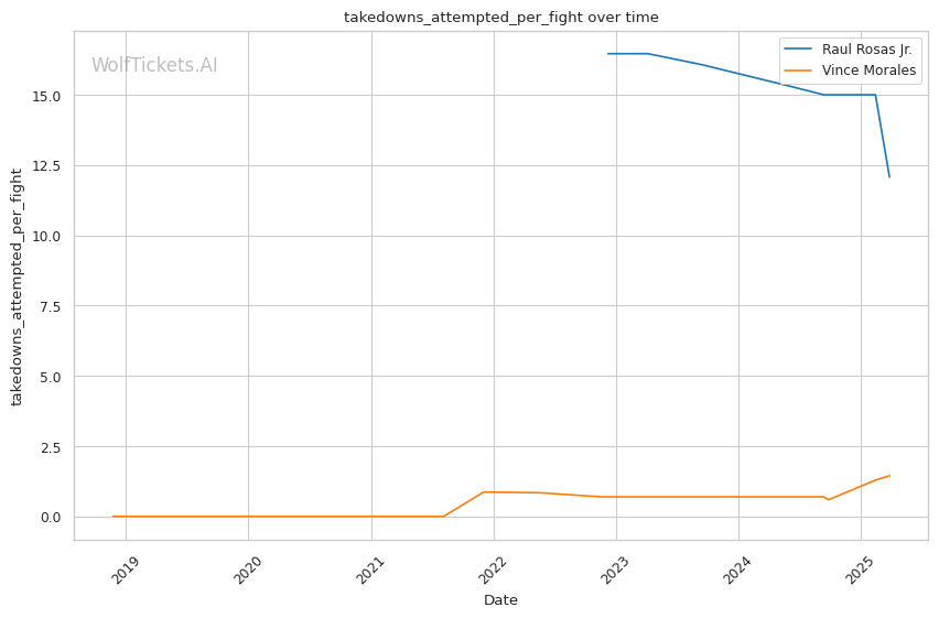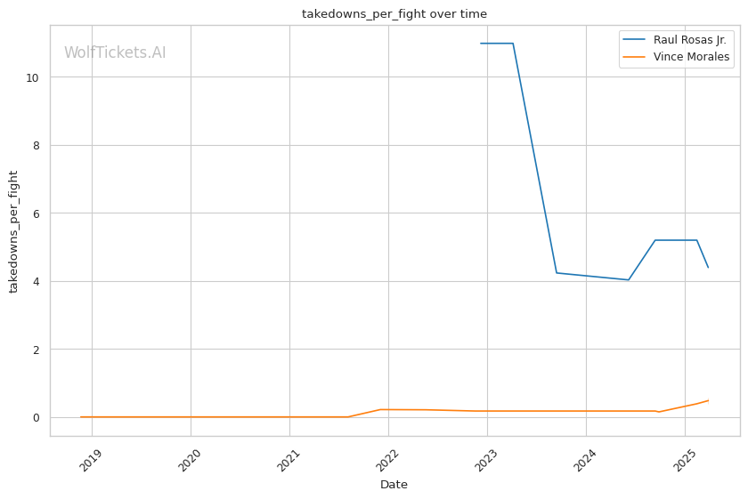 Grappling Advantage: Rosas averages 4.4 takedowns per fight compared to Morales's 0.57, presenting a clear path to victory through wrestling control.
