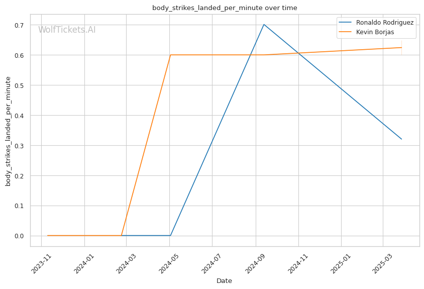 | Stat | Ronaldo Rodriguez | Kevin Borjas | Weight Class Average | |