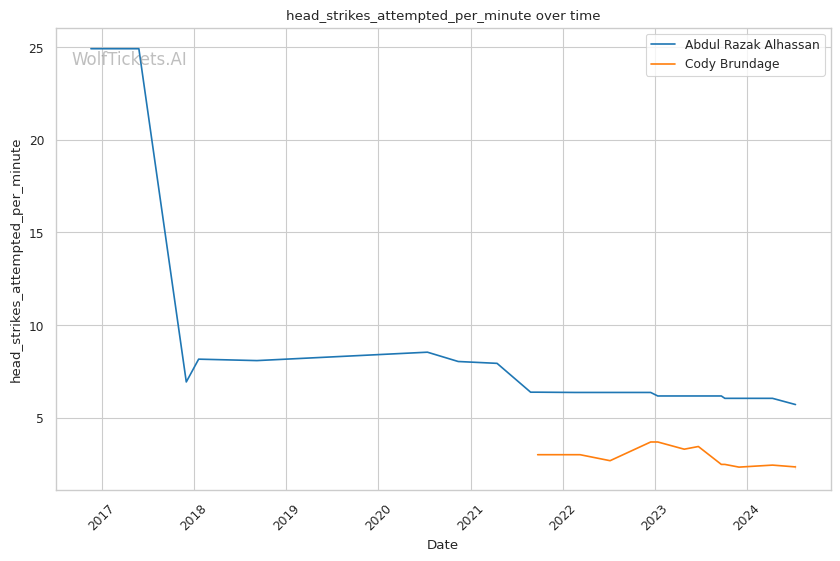 | Head Strikes Attempted per Minute | 5.706 | 2.244 | 6.191 | |