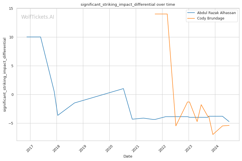 | Significant Striking Output Differential | -15.25% | -8.33% | 3.31% | |