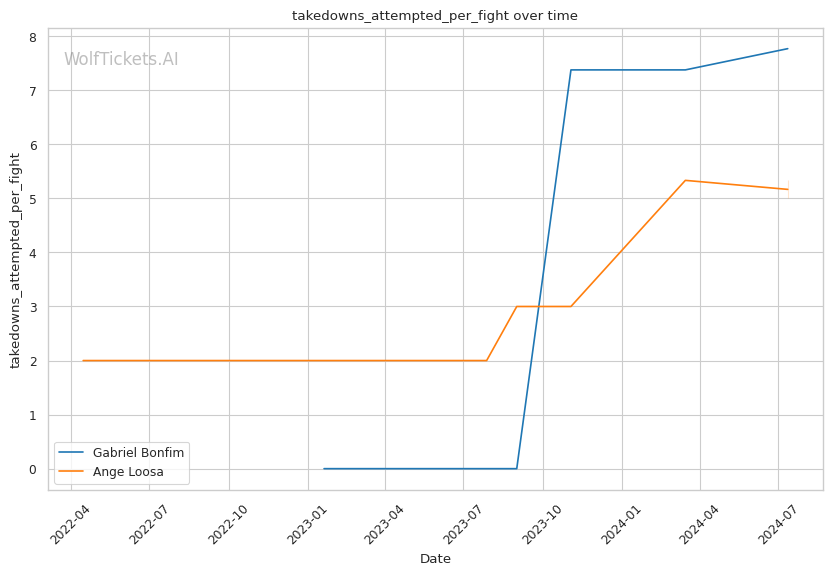 | Takedowns Attempted per Fight | 7.770 | 5.000 | 3.398 | |