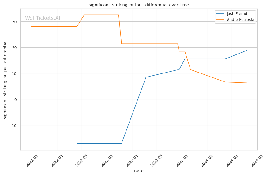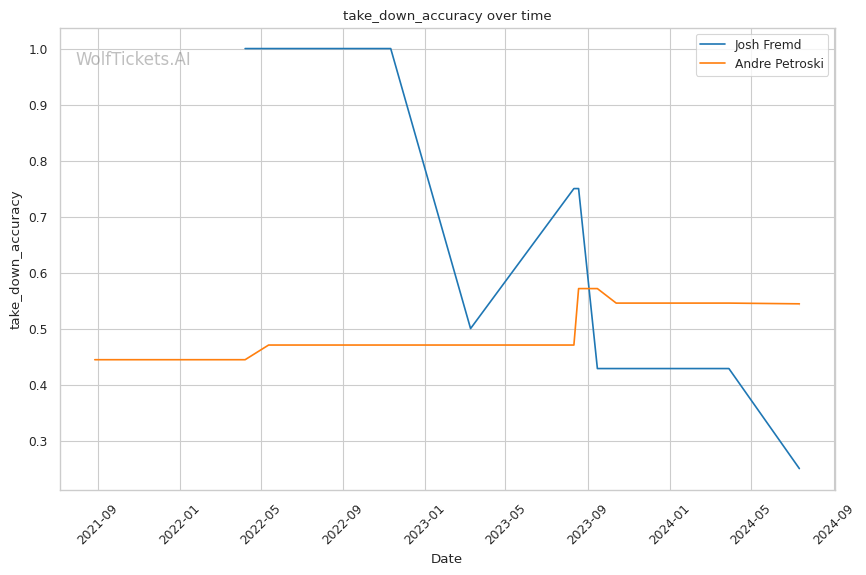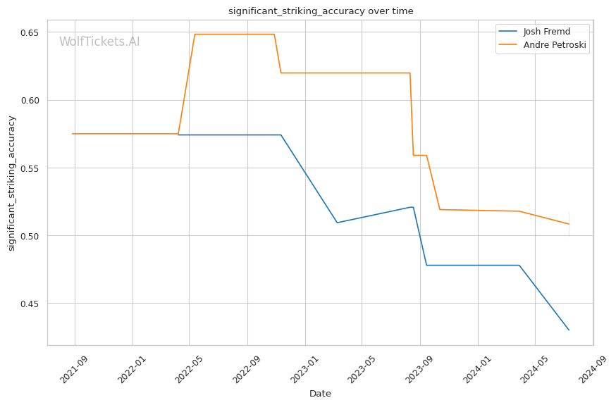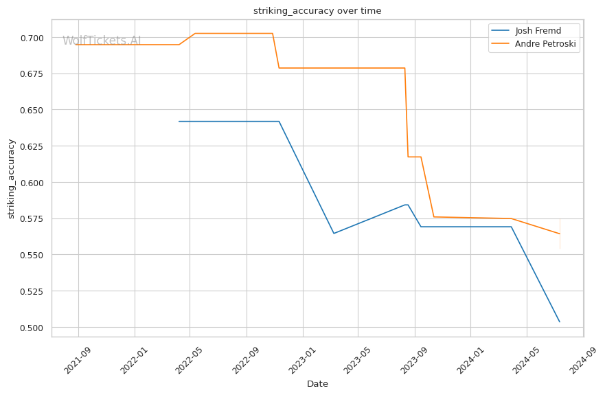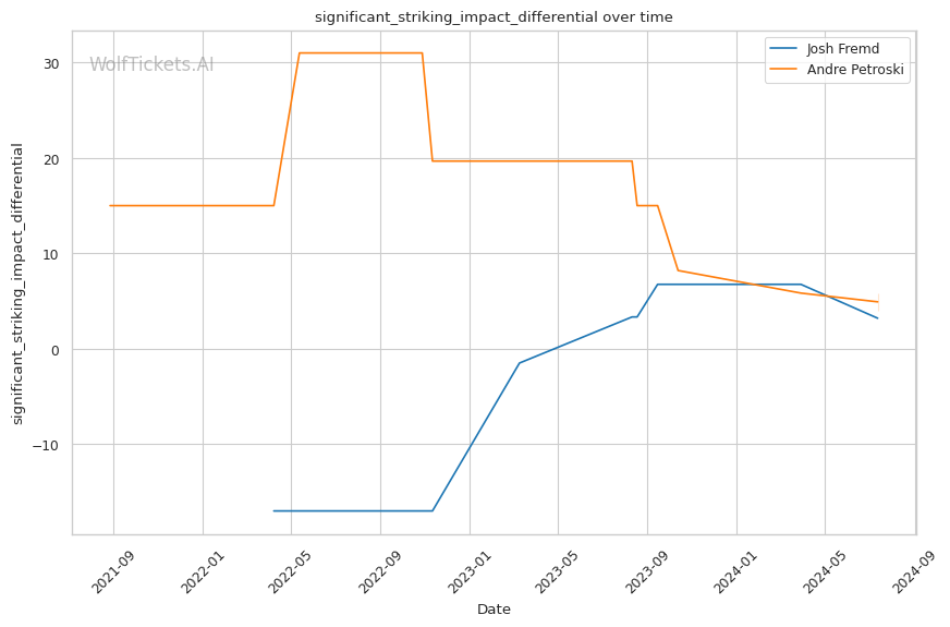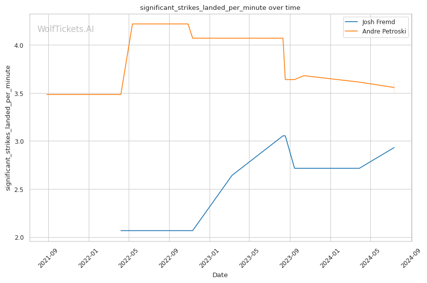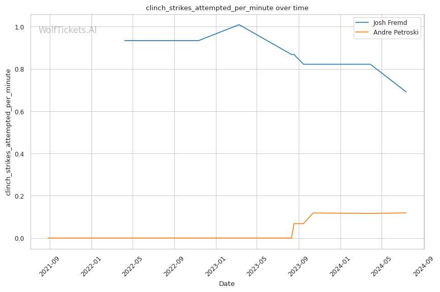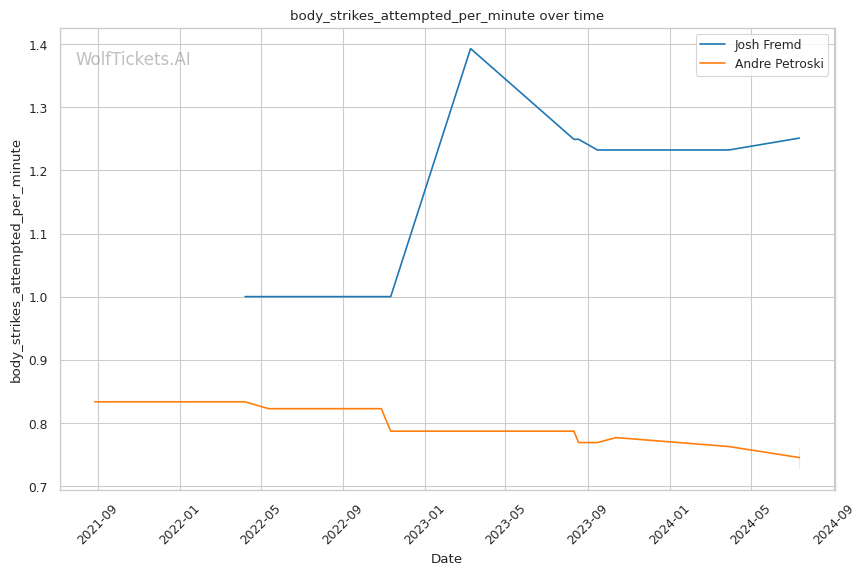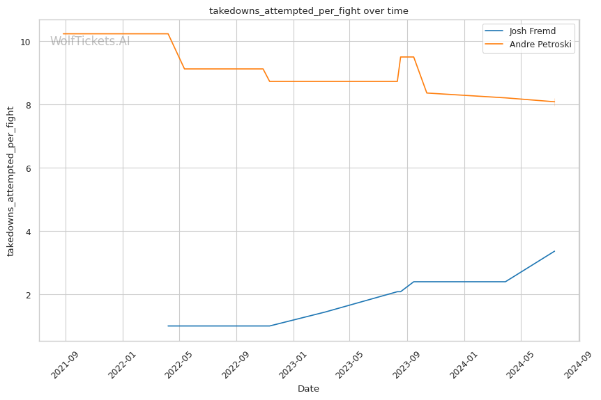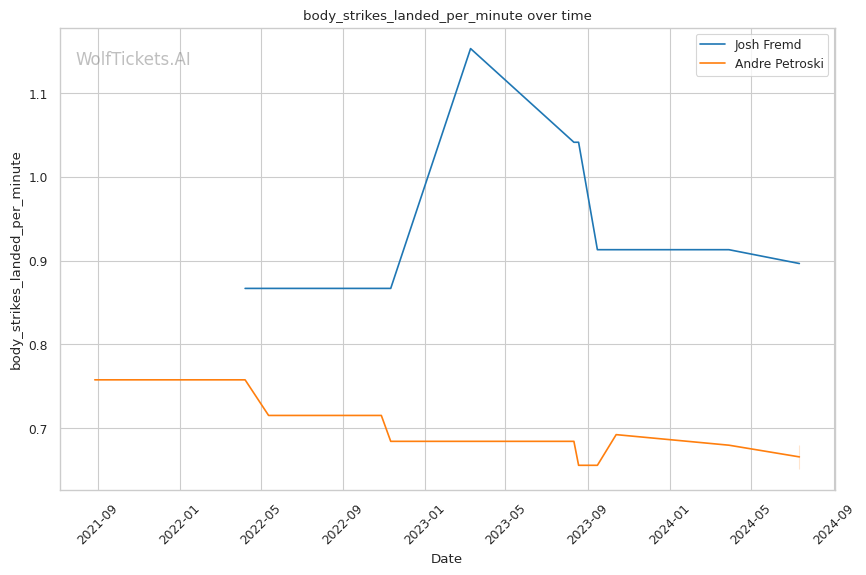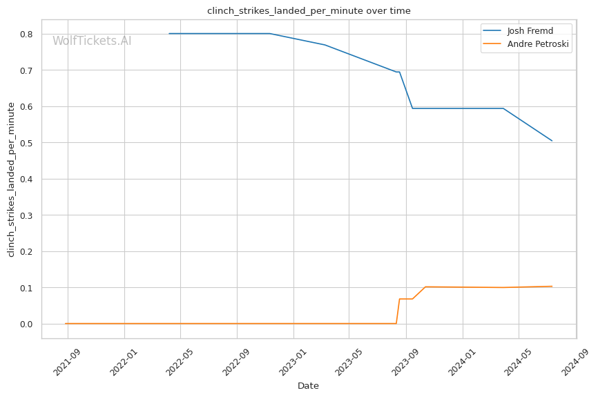 Petroski's chain wrestling ability could pose significant problems for Fremd if the fight hits the mat. He's shown striking improvements, landing 3.5 significant strikes per minute with 49.89% accuracy, which may come into play if his takedown attempts are thwarted.