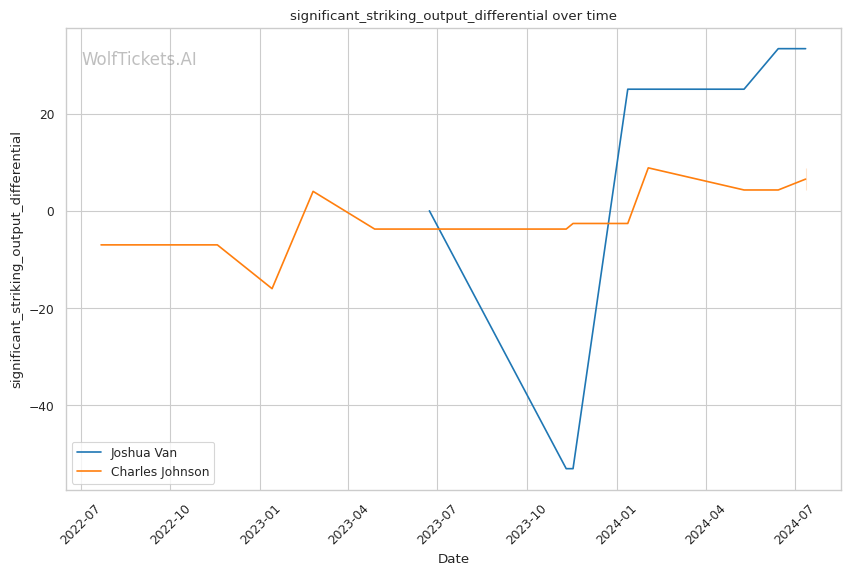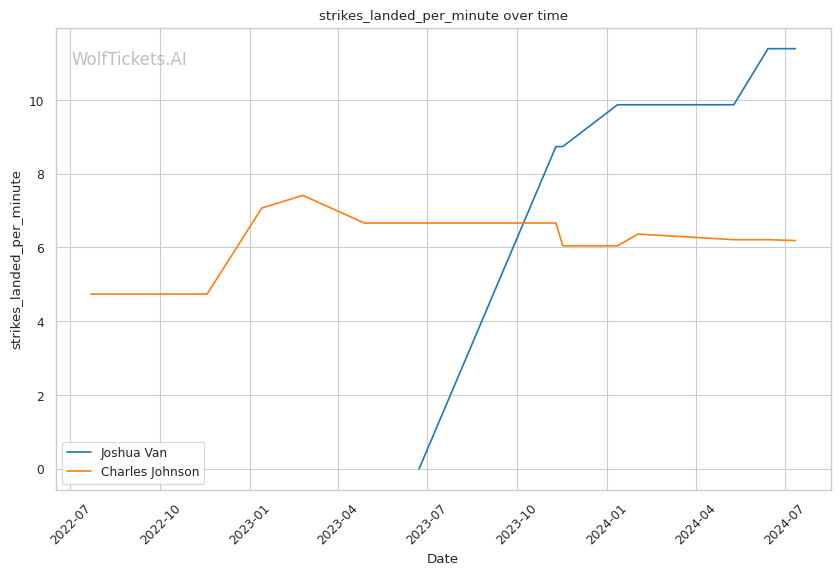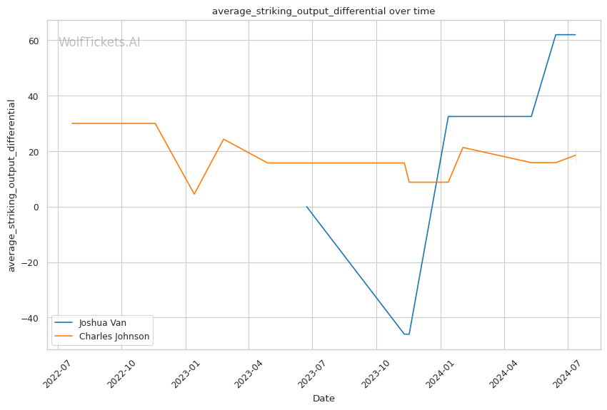 WolfTicketsAI favors Joshua Van in this flyweight clash, primarily due to his superior striking metrics and recent form. Van's ability to land volume with impact gives him a significant edge on paper. However, Charles Johnson's experience, recent victories, and more diverse skill set add an element of unpredictability.