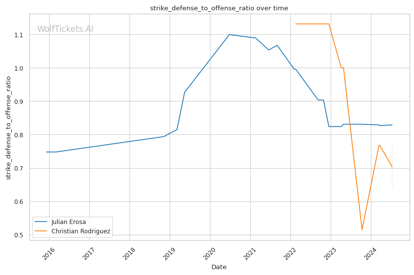 | Striking Defense to Offense Ratio | 82.90% | 64.00% | 81.16% | |