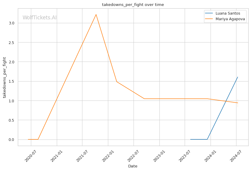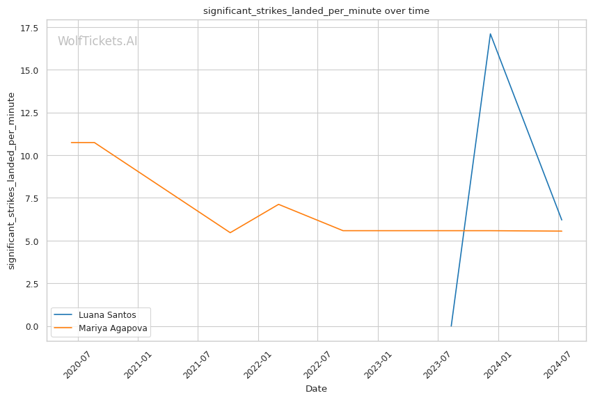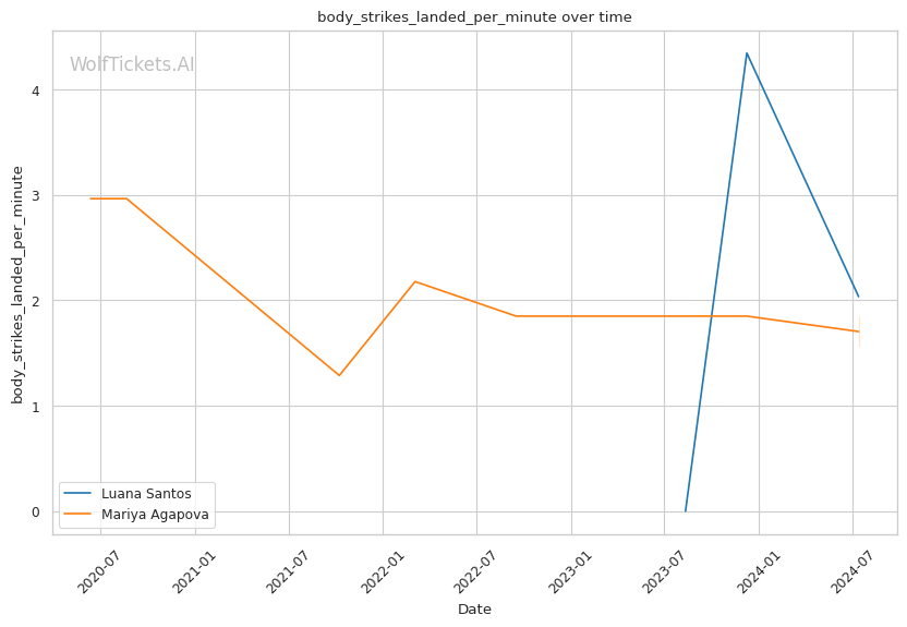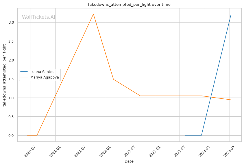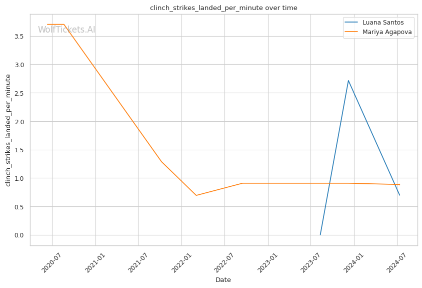 | Stat | Luana Santos | Mariya Agapova | Weight Class Average | |