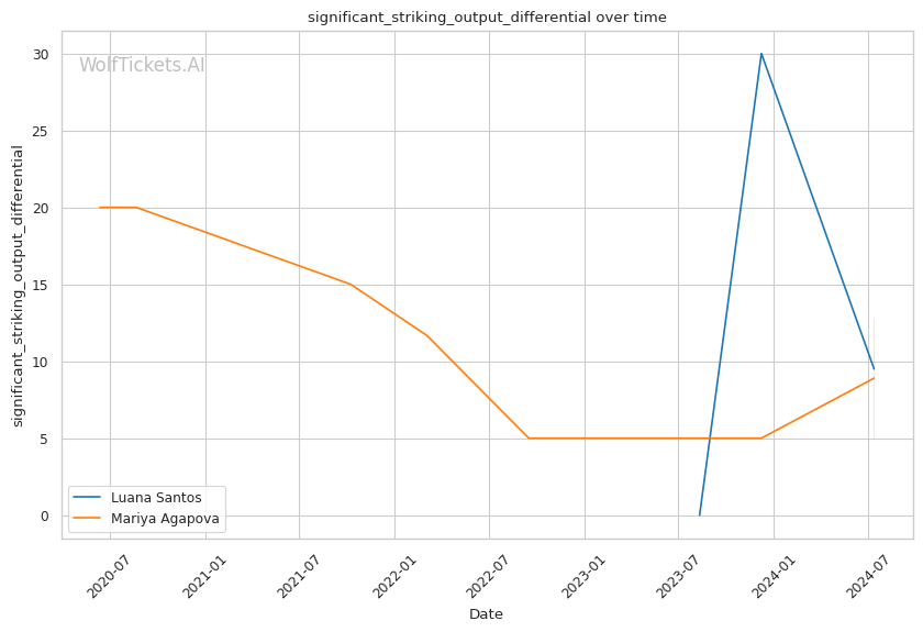 However, Agapova's submission threat and southpaw stance present unique challenges. The contrast in recent career trajectories - Santos's rise vs Agapova's struggles - adds an intriguing narrative layer to this matchup.
