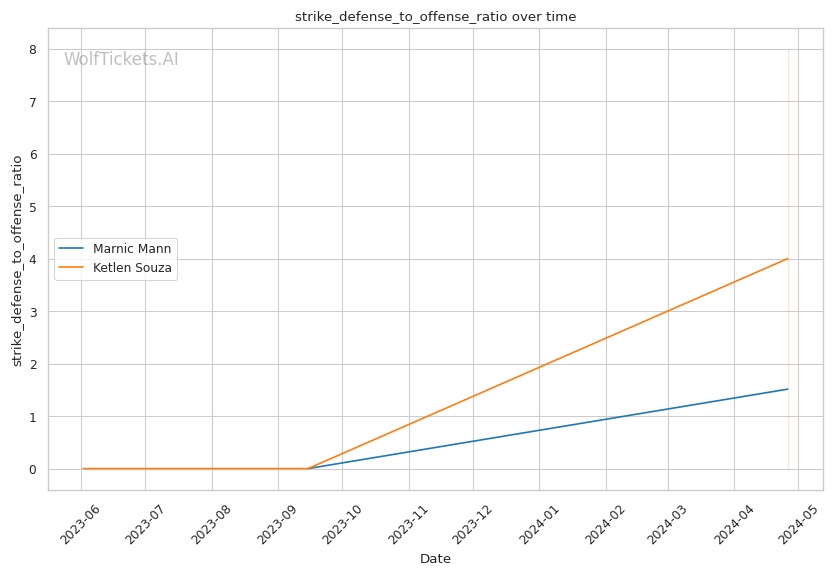 | Significant Striking Defense to Offense Ratio | 587.50% | 0.00% | 123.45% | |