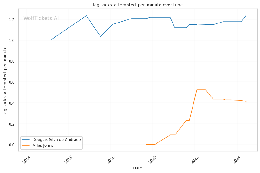 | Leg kicks Attempted per Minute | 1.240 | 0.400 | 0.703 | |