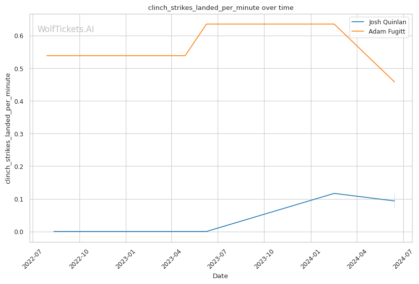 Despite the recent setbacks, Quinlan has shown impressive striking skills in the past. He lands 3.23 significant strikes per minute at a 40% accuracy rate. Additionally, his takedown defense is robust at 100%, although he rarely attempts takedowns himself, averaging just 0.53 per fight.