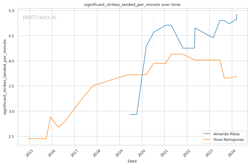 | Stat | Amanda Ribas | Rose Namajunas | Weight Class Average | |