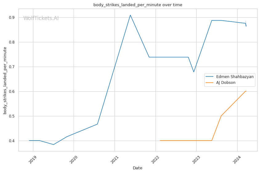 Overall, Edmen Shahbazyan deserves to be favored here based on his longer UFC track record and superior striking metrics. However, his recent skid and those KO losses are concerning, and give AJ Dobson a clear path to victory if he can weather the early storm and turn it into a grappling match.
