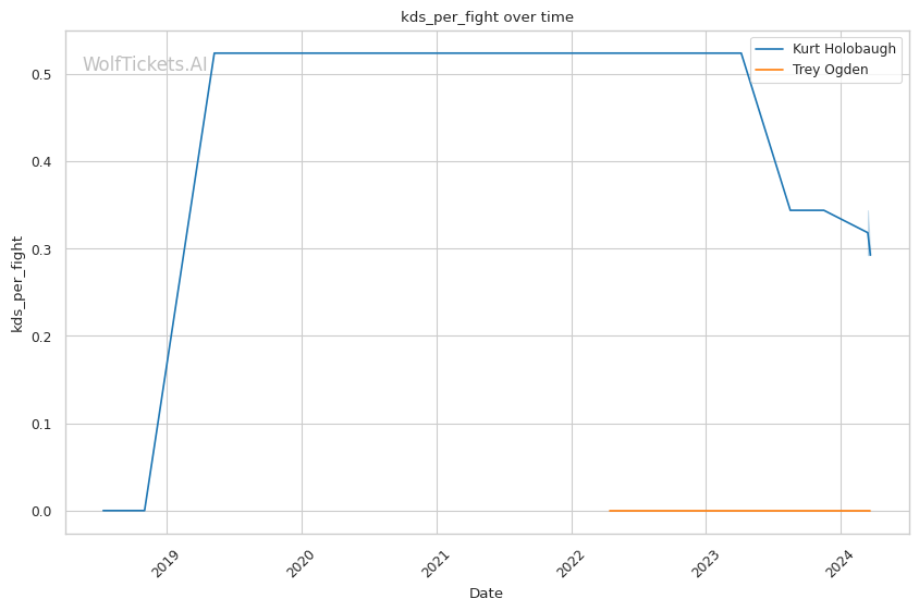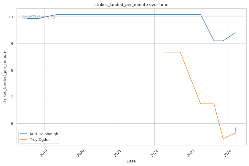 Ogden doesn't land at as high a clip, but he's more accurate and harder to hit. His striking defense is quite good. The big question mark is his wrestling - he shoots a lot of takedowns but rarely secures them. Against a savvy vet like Holobaugh, failed takedowns could lead to bad positions.