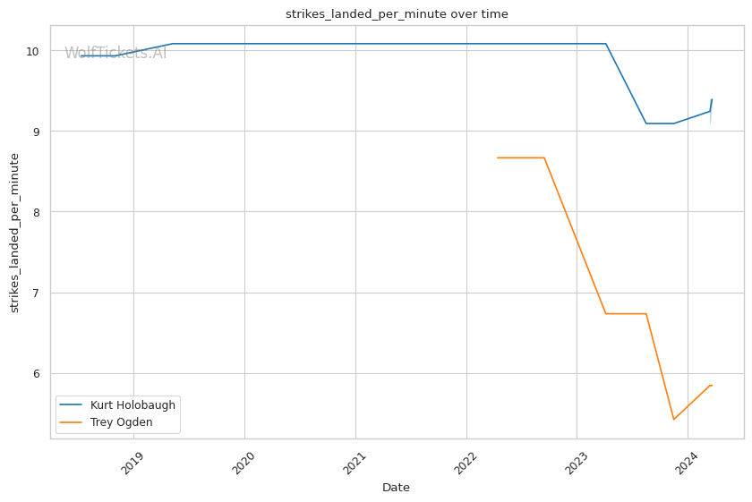 Holobaugh has the experience edge and is coming off an impressive submission win. His striking output outpaces Ogden's and he's a busier offensive fighter overall. However, his defensive striking numbers are concerning, especially the 4+ head strikes absorbed per minute.
