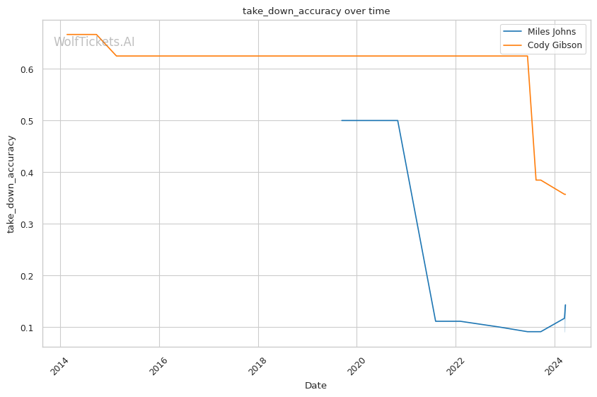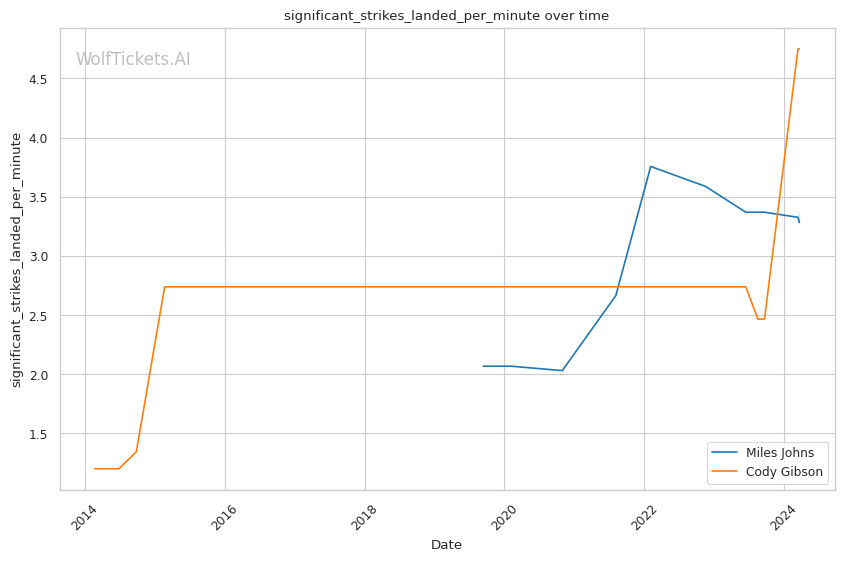 | Stat | Miles Johns | Cody Gibson | Weight Class Average | |