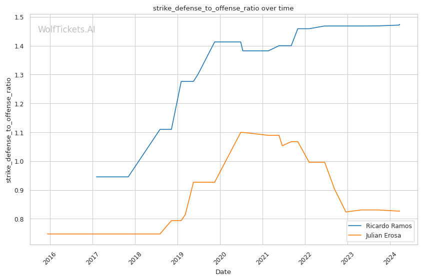 | Striking Defense to Offense Ratio | 147.41% | 82.67% | 79.22% | |