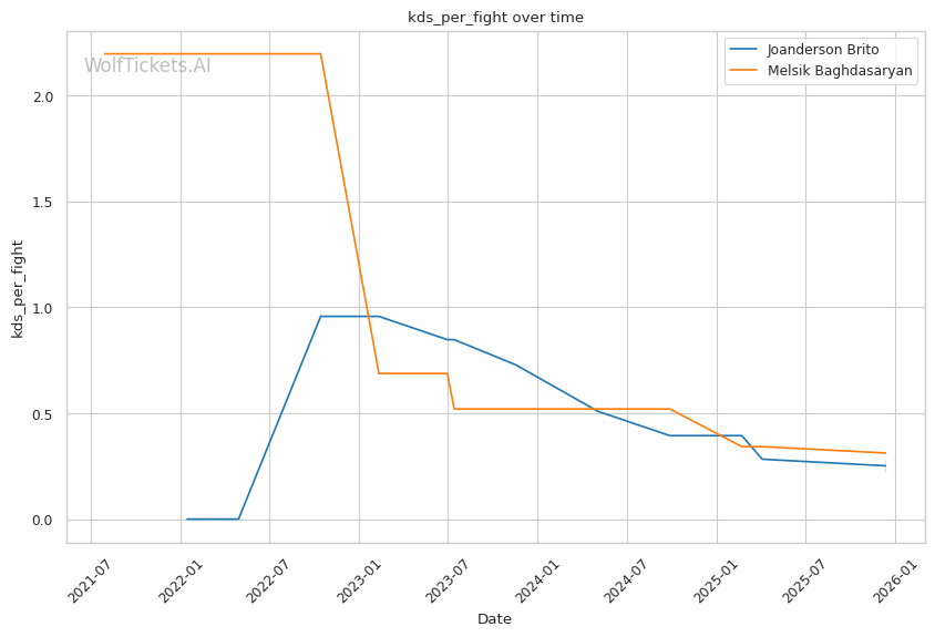 Brito's pressure fighting and cage-cutting ability should neutralize Baghdasaryan's preference for kicking range. When Brito backs opponents to the fence—as he did against Shore—he can unload calf kicks while threatening combinations. Baghdasaryan's 40% takedown defense means Brito can mix in takedowns to keep him guessing.