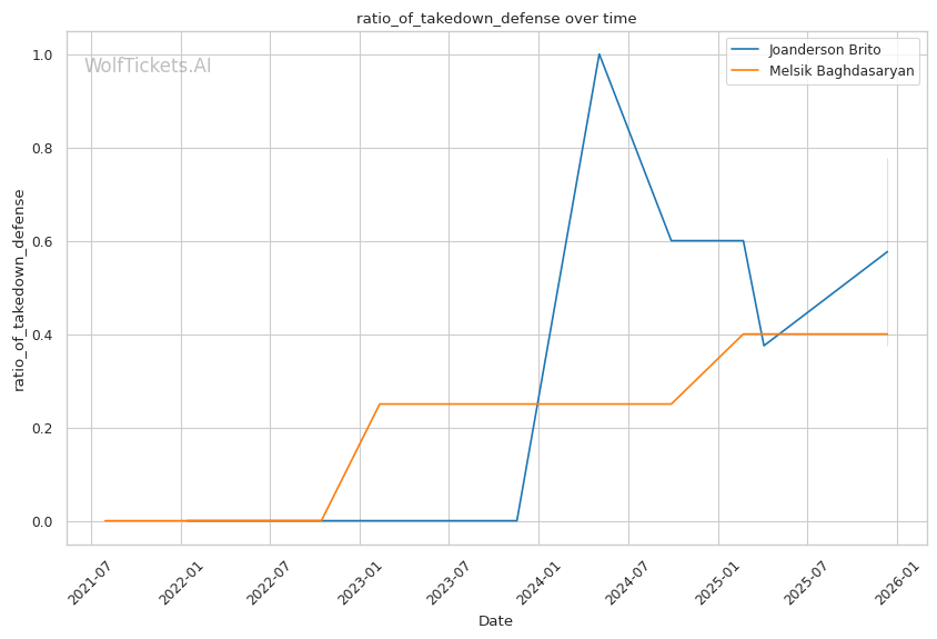 Takedown Defense: Baghdasaryan's takedown defense ratio sits at just 40% career and 32.2% recently. Against Josh Culibao, he got submitted in round 2 after being taken down. He doesn't threaten off his back and struggles to return to his feet against competent grapplers.