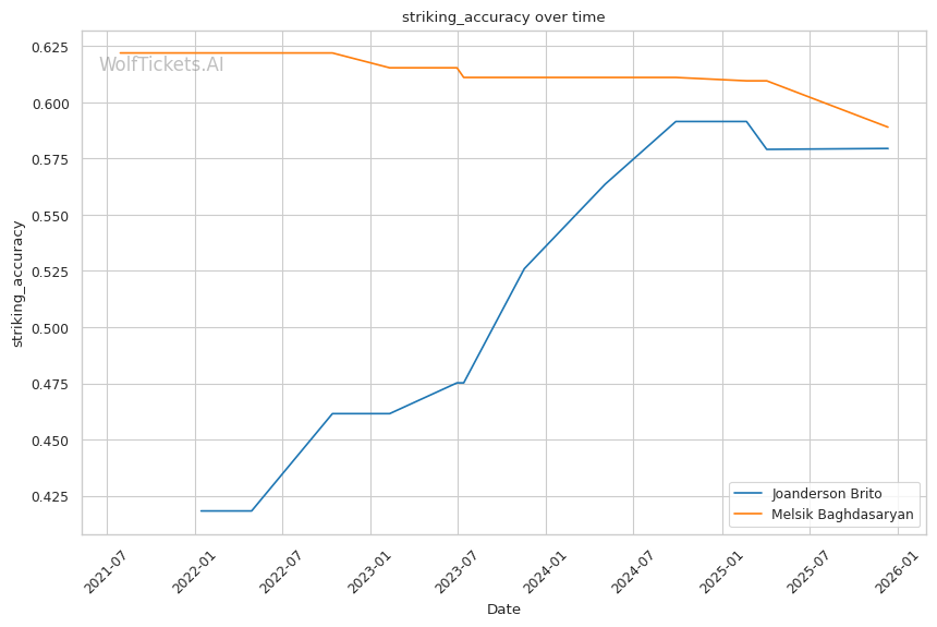 Risk Assessment: The model's recent misses on Brito came against a wrestler and a point-fighter. Baghdasaryan is a striker who wants to stand and trade—a style Brito has historically handled well.