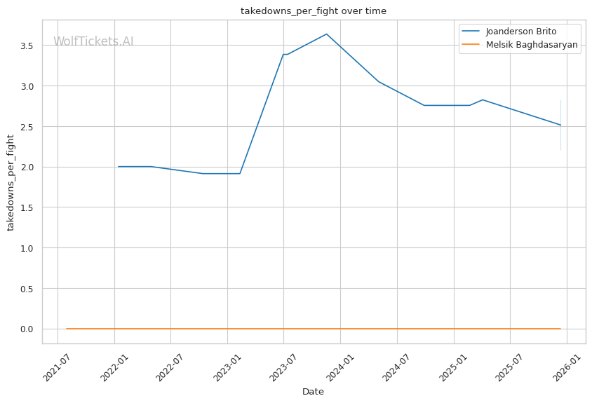Brito's pressure fighting, cage-cutting ability, and clinch work should neutralize Baghdasaryan's one-dimensional kicking game. Baghdasaryan's recent KO loss to Silva and his 40% takedown defense create exploitable vulnerabilities. While Brito has lost two straight, those losses came against styles that don't match Baghdasaryan's approach. WolfTicketsAI has Brito winning this one, and the technical matchup supports that pick.