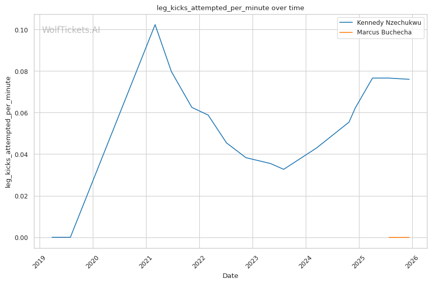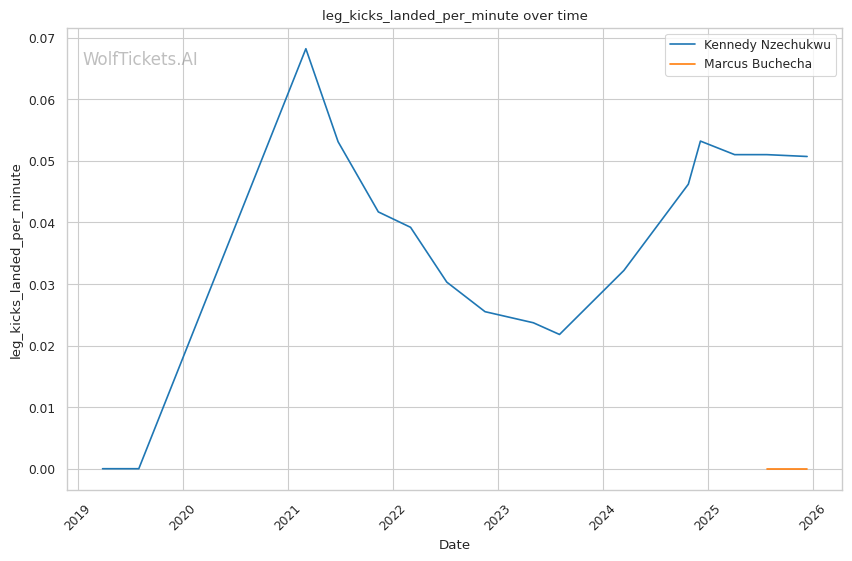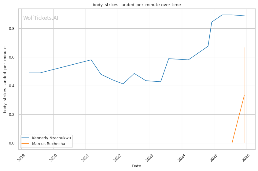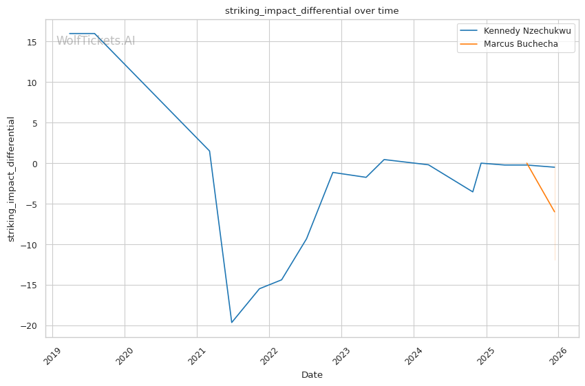 Recent Significant Striking Impact Differential increased the score by 2.0 — Nzechukwu's recent striking output (+2.21) far exceeds Buchecha's (-17.0).