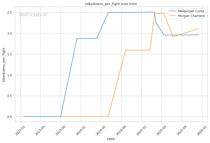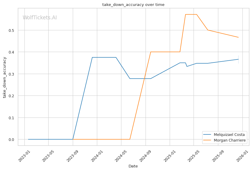 Takedown Defense: Charriere's 20% takedown defense ratio is alarming. While he can scramble and recover, he struggles to stop initial entries. Against a submission specialist like Costa, getting taken down repeatedly could be catastrophic.