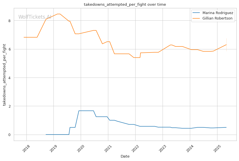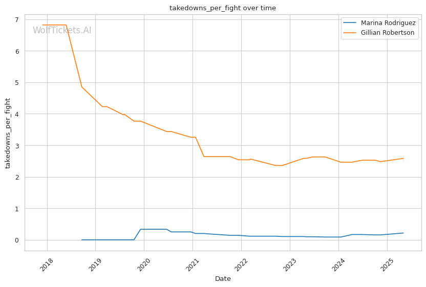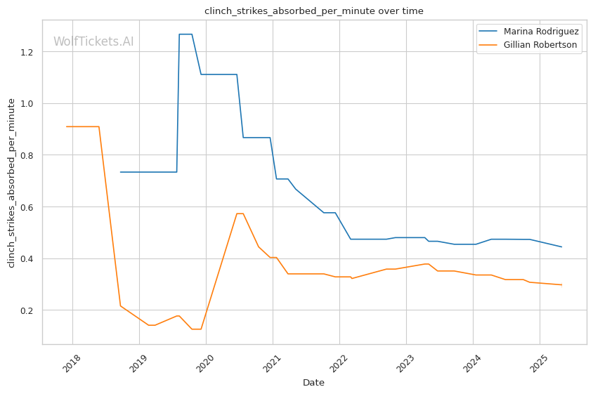 Rodriguez's defense against takedowns sits at a concerning 60%, which could be problematic against a submission specialist like Robertson. When forced to grapple, Rodriguez often finds herself in defensive positions rather than mounting offense from her back.