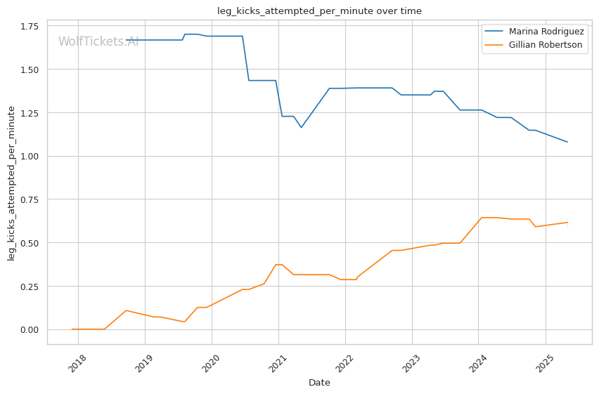 | Leg kicks Attempted per Minute | 1.079 | 0.640 | 0.690 | |