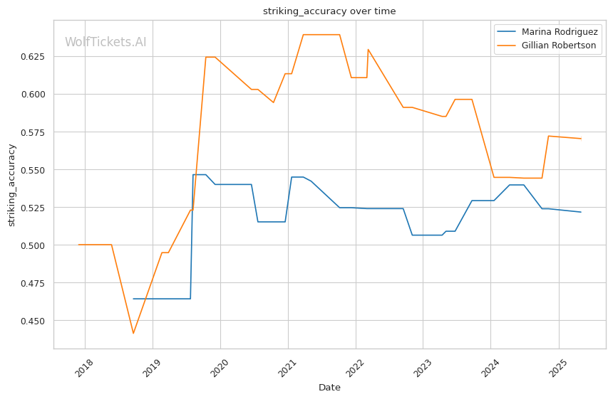 This suggests the model has a strong understanding of Robertson's capabilities but has occasionally overestimated Rodriguez's ability to implement her striking game against certain opponents.