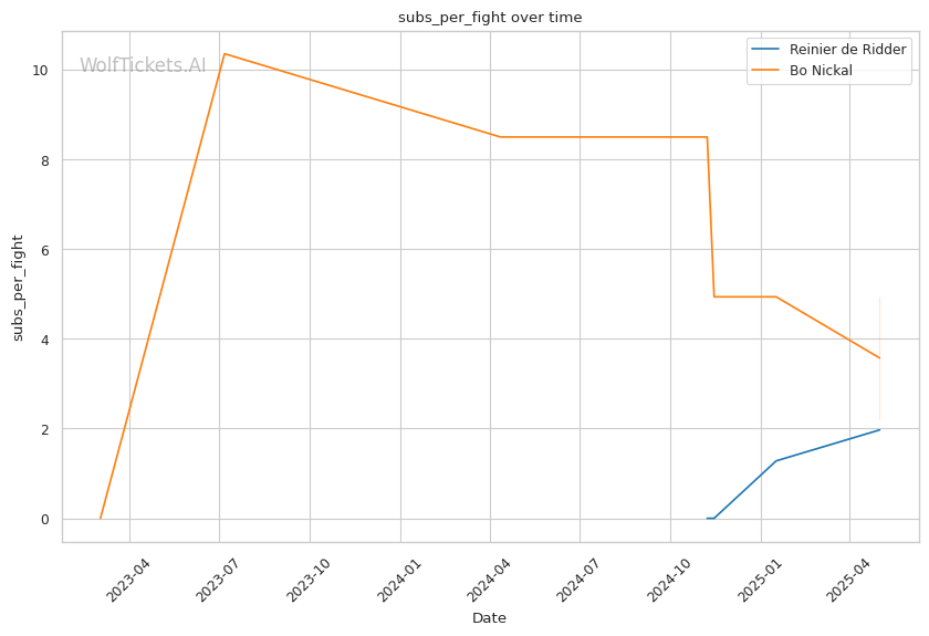 Submission threats: De Ridder attempted 20 submissions against Meerschaert, showing his willingness to risk position for finish opportunities.