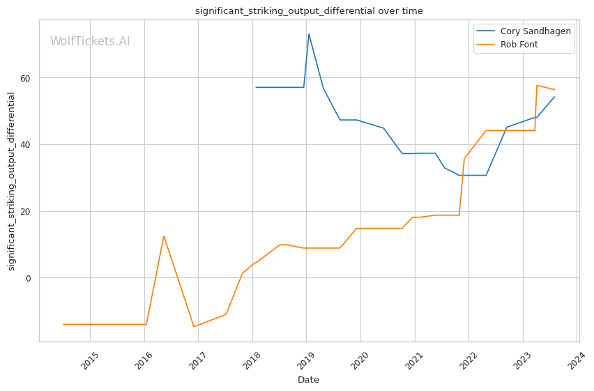 | Stat | Cory Sandhagen | Rob Font | Weight Class Average | |