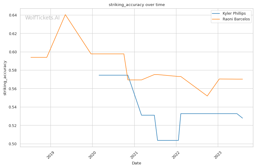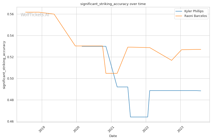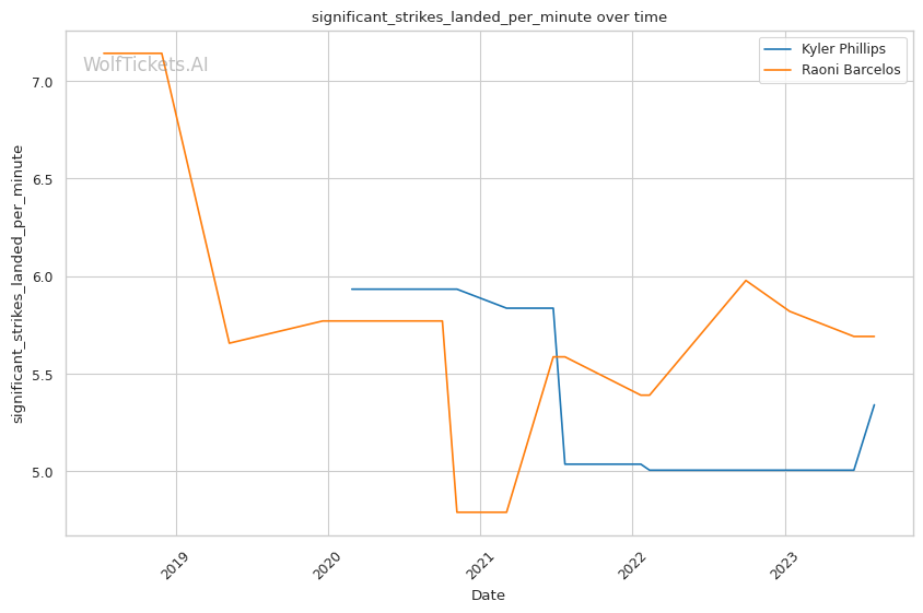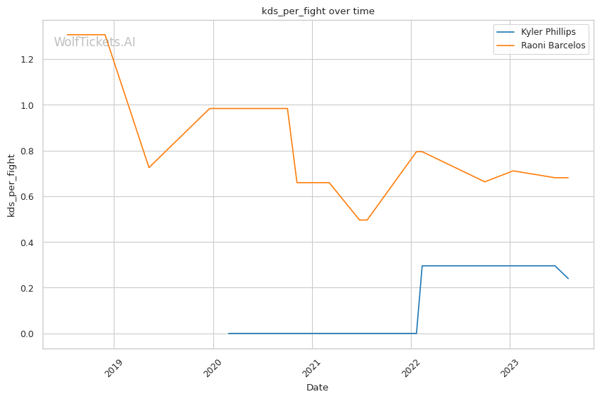 | Stat | Kyler Phillips | Raoni Barcelos | Weight Class Average | |