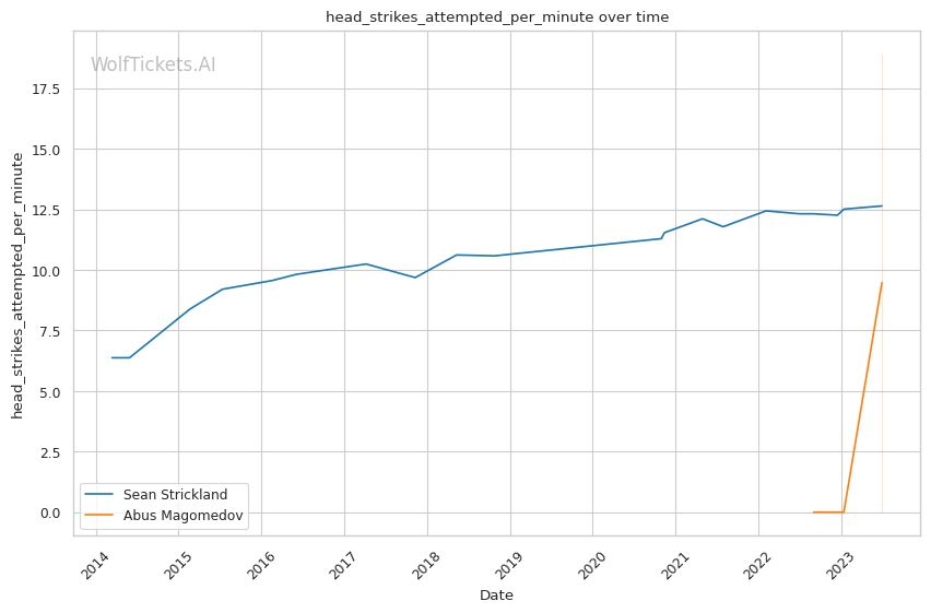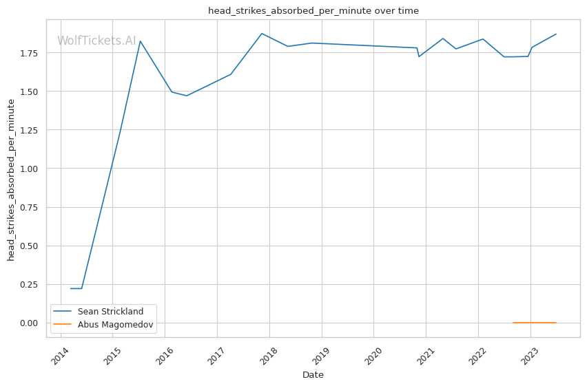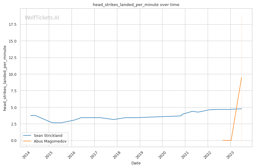 | Head Strikes Landed per Minute | 4.755 | 18.947 | 2.839 | |