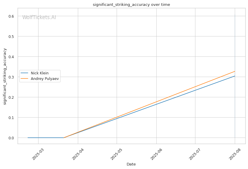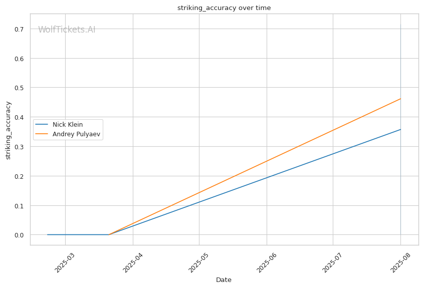 WolfTicketsAI has no previous predictions for either fighter, making this analysis based purely on their technical profiles and statistical differentials. The model's confidence in Klein stems from clear technical advantages rather than historical prediction patterns.