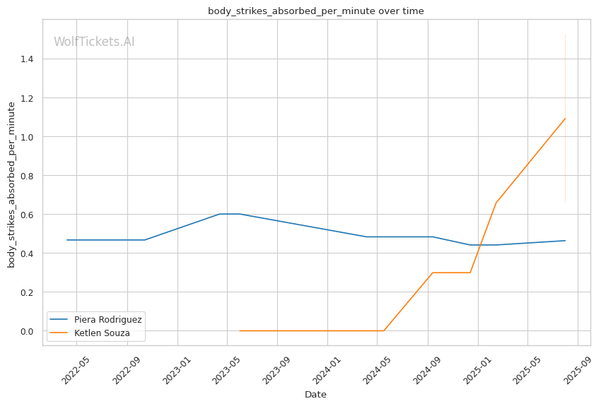 Mid-fight adjustments: Rodriguez may attempt to increase her takedown attempts to neutralize Souza's striking, but Souza's improved grappling and submission threats make this risky. Souza's body work should begin affecting Rodriguez's cardio and movement.