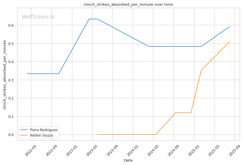 Rodriguez's clinch-heavy approach could neutralize Souza's counter-striking, but Souza's improved takedown defense (79% recently) and ability to create space through underhook battles suggests she can avoid prolonged clinch exchanges. Souza's body work, particularly her right straights to the midsection, should accumulate damage against Rodriguez's forward pressure.