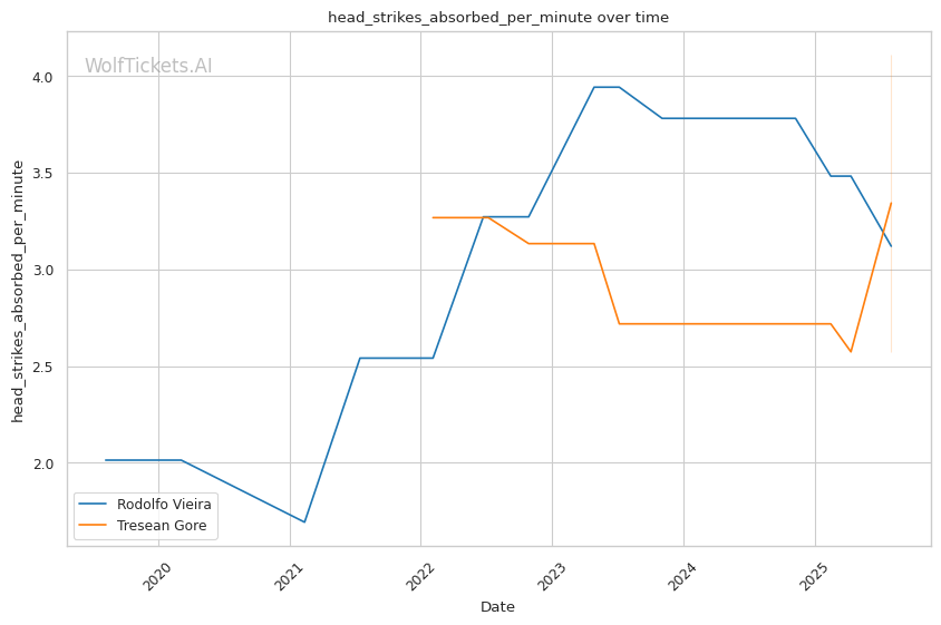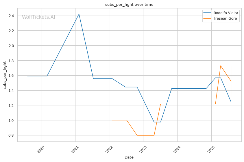 Championship rounds heavily favor Vieira's superior cardio management and technical efficiency. Gore's mobility decreases notably in later rounds, as evidenced against Tulio when accumulated leg kicks compromised his explosive entries. Vieira's submission rate of 1.2422 per fight suggests he'll capitalize on Gore's fatigue-induced defensive lapses.