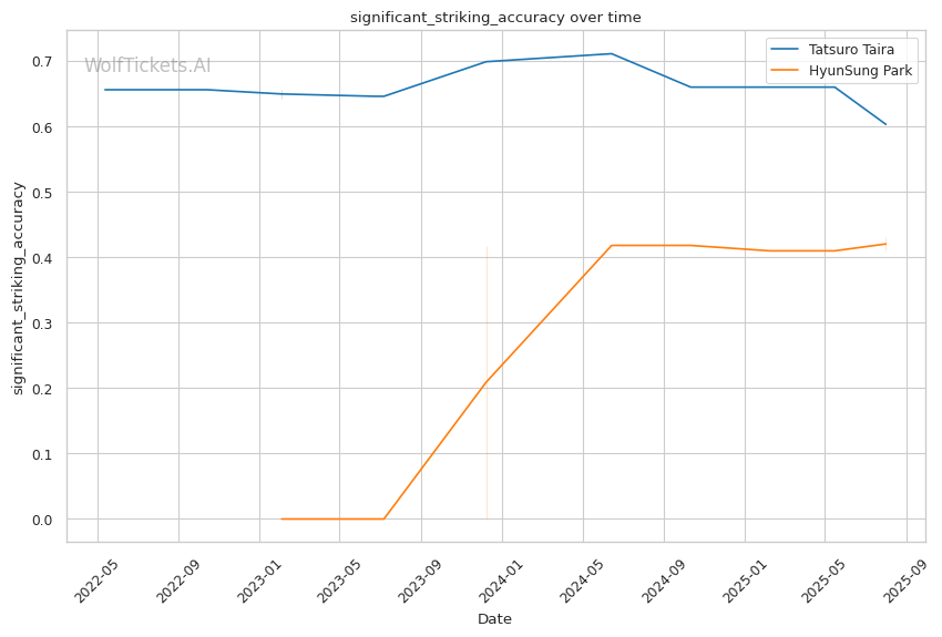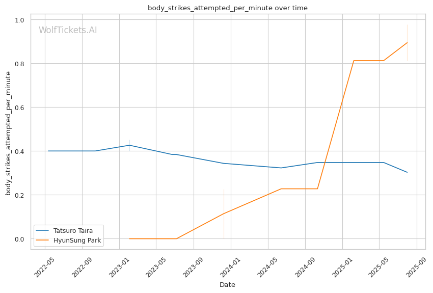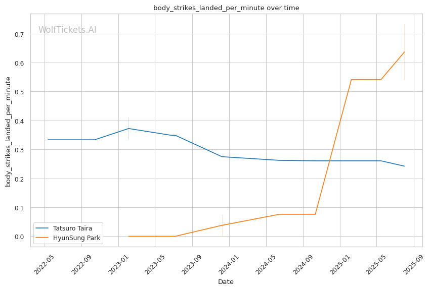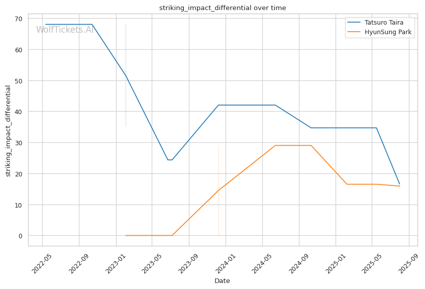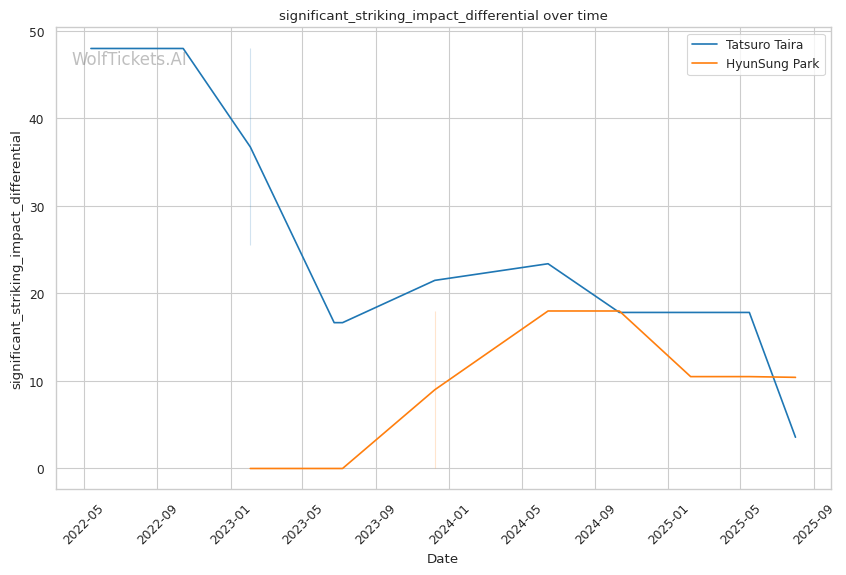 Park's body attack emphasis could exploit Taira's 44% striking defense, but his forward-leaning entries create perfect opportunities for Taira's uppercut counters. The key technical battle centers on whether Park can maintain his pressure without overextending into Taira's clinch traps.