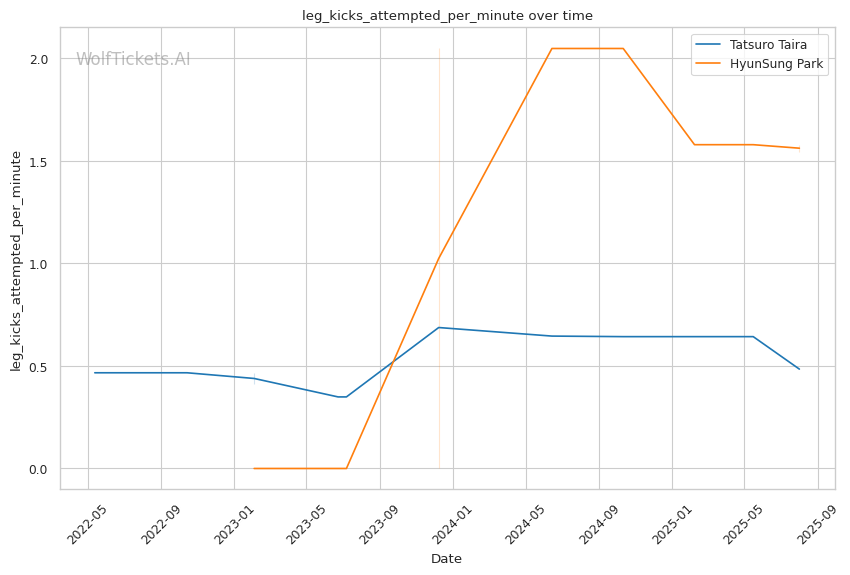 | Leg kicks Attempted per Minute | 0.485 | 1.545 | 0.697 | |