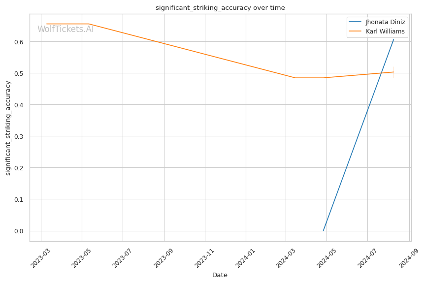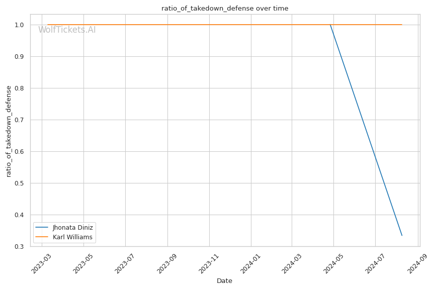However, Diniz's ground game remains largely untested in MMA. His takedown defense ratio of 0.33 raises questions about his grappling acumen, a potential vulnerability against a wrestler of Williams' caliber.