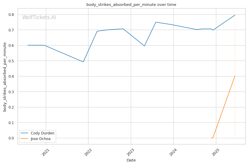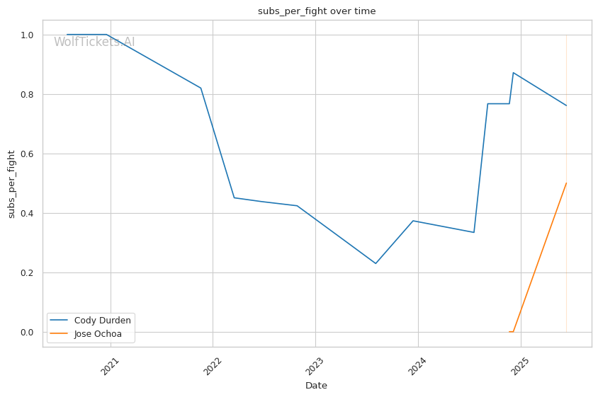 Cardio and Pace Management: Durden typically starts strong with high-pressure wrestling but has shown cardio issues in later rounds. Against Charles Johnson, his pace slowed significantly in round 3. If Ochoa can survive the early onslaught and force Durden into extended striking exchanges, the fight could shift dramatically in the later rounds.