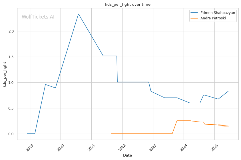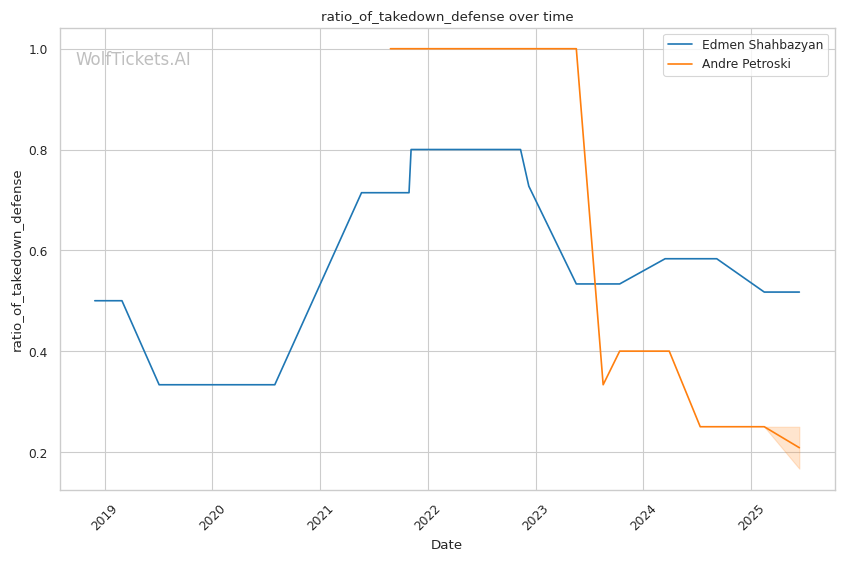 Conversely, Petroski's single-leg to body lock sequence could exploit Shahbazyan's cardio management issues. If Petroski can weather the early storm and force Shahbazyan to work defensively against takedowns, he could capitalize on Shahbazyan's diminishing output in later rounds. Against Meerschaert, Shahbazyan's defensive grappling deteriorated significantly once he began to fatigue.
