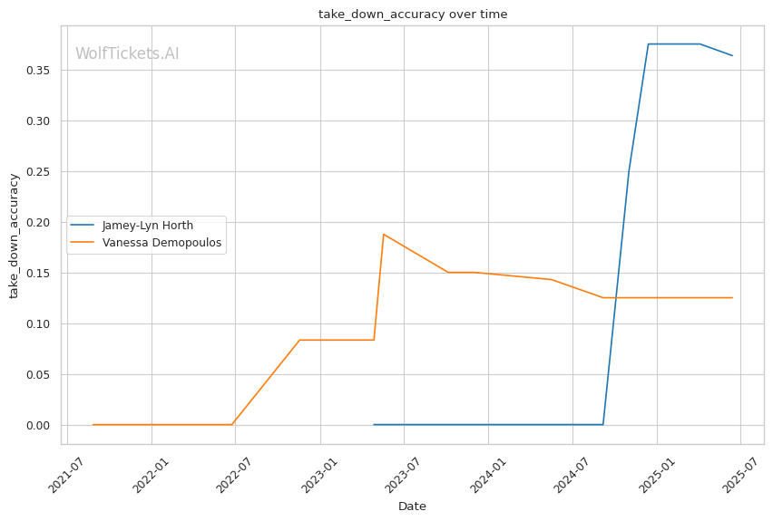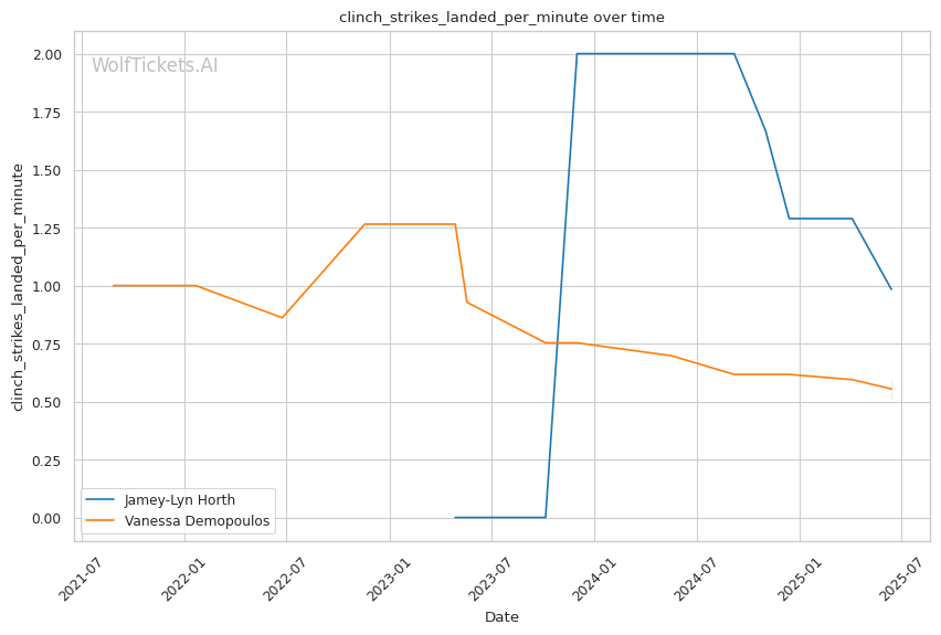 Championship Rounds: Cardio will significantly impact the technical execution in later rounds. Horth has shown consistent energy management throughout her fights, maintaining her technical approach even in the third round. Demopoulos, however, has demonstrated the ability to capitalize on opponents' fatigue, as seen in her fight with Amorim where she found more success with her striking as Amorim tired.