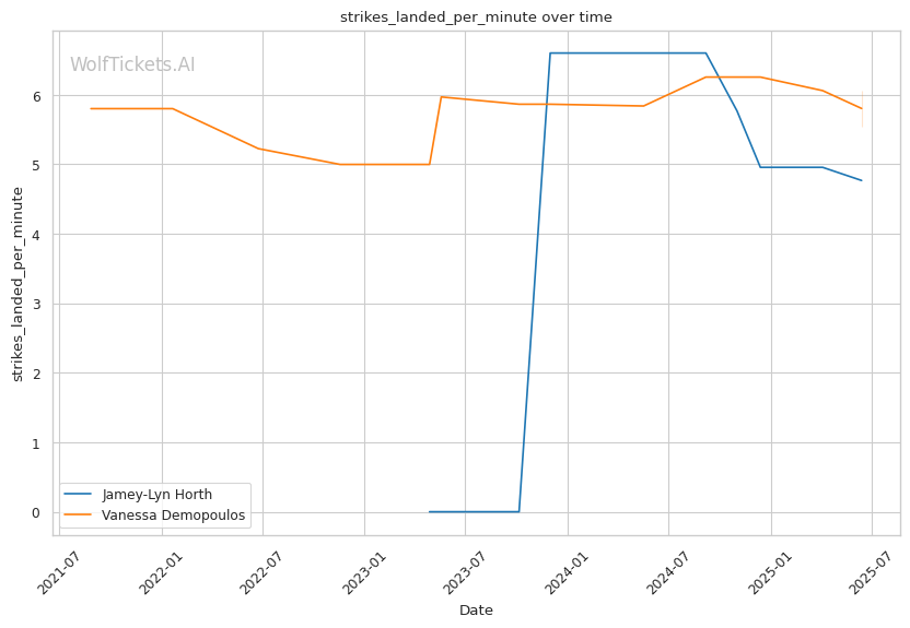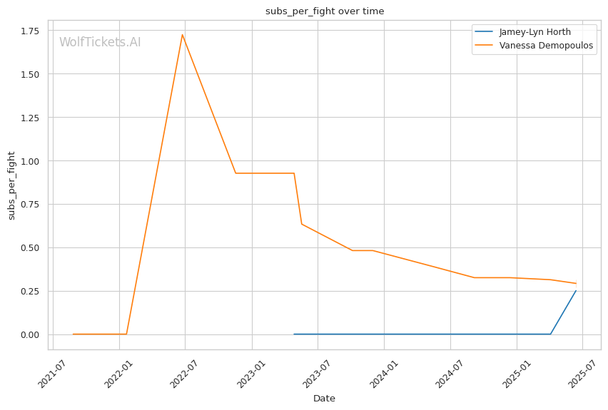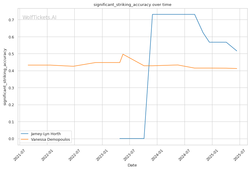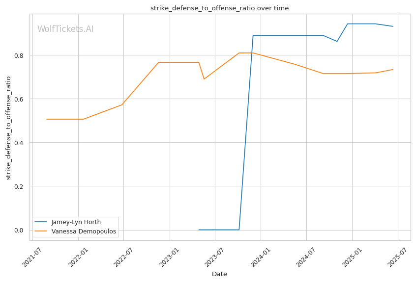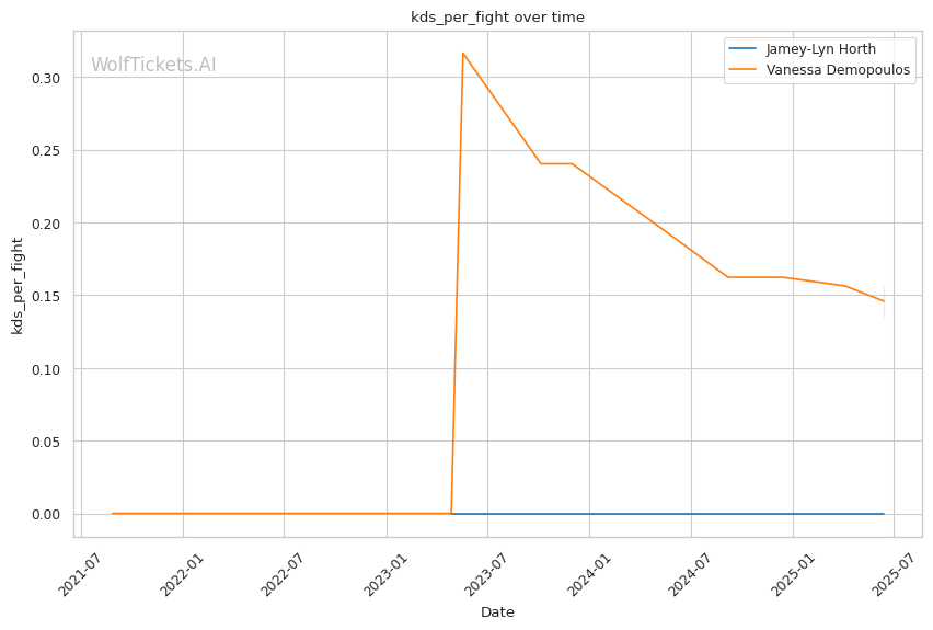 Jamey-Lyn Horth's technical precision, significant reach advantage, and methodical approach create a favorable matchup against Vanessa Demopoulos's chaotic, submission-hunting style. While Demopoulos's flexibility and opportunistic submissions make her dangerous at any moment, Horth's disciplined striking and patient ground control should allow her to neutralize these threats and control the fight. WolfTicketsAI's prediction of a Horth victory is supported by her superior striking metrics, defensive skills, and the significant betting market confidence in her success.