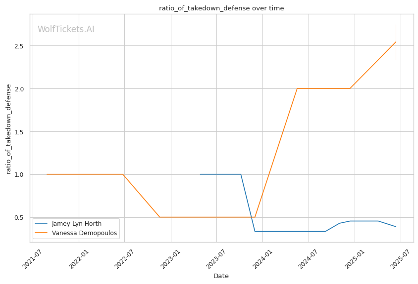 Mid-Fight Adjustments: As the fight progresses, Demopoulos will likely increase her aggression to close distance, potentially leaving herself vulnerable to Horth's takedowns. This mirrors the technical shift in Horth's fight with Petrovic, where she capitalized on increasing aggression with well-timed takedowns. If Demopoulos succeeds in closing distance, expect her to attempt to pull guard or create scrambles rather than maintaining clinch position.