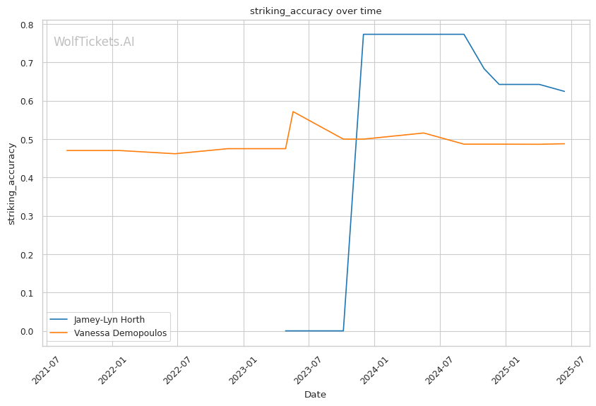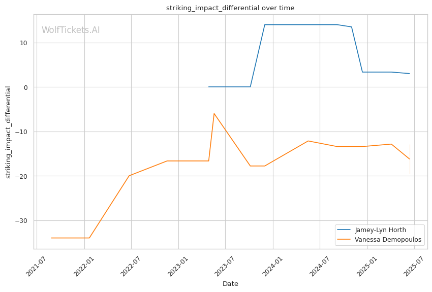 These factors paint a clear picture: Horth's technical striking advantage, combined with her superior defensive skills, create a favorable matchup against Demopoulos's more chaotic approach.