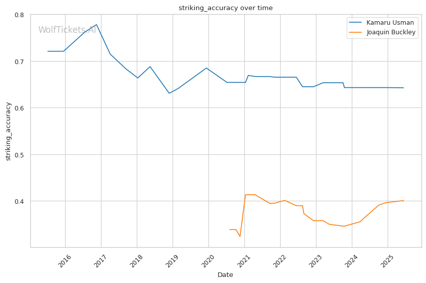 Linear pressure vs. lateral movement: If Usman can employ the lateral movement he showed against Colby Covington, he could exploit Buckley's tendency to attack in straight lines. However, Usman's diminished mobility may prevent him from executing this gameplan effectively.