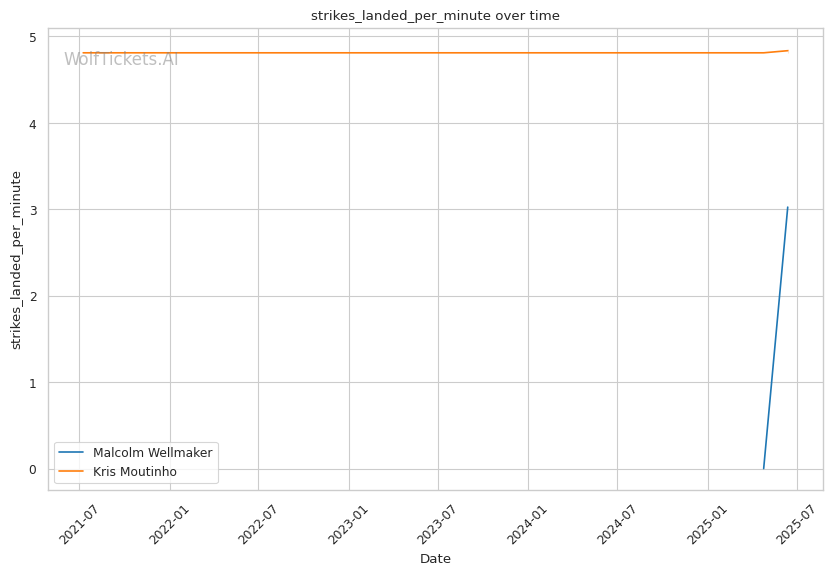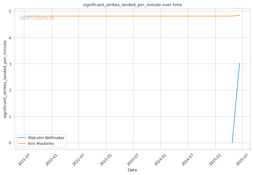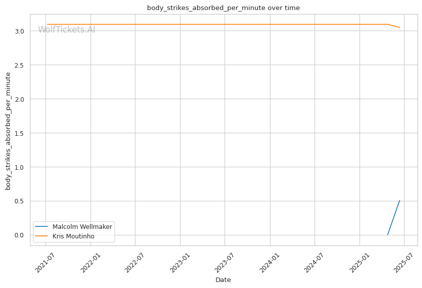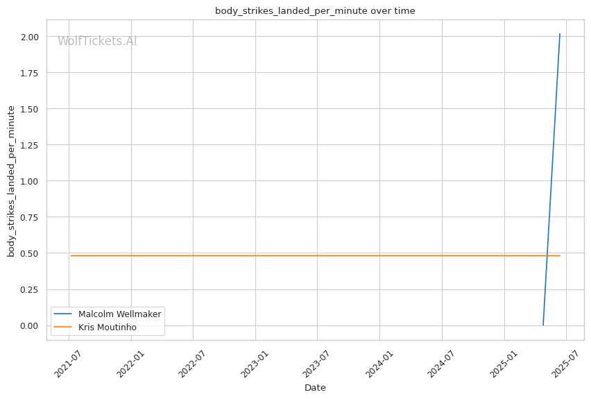 Wellmaker's body jab will likely be effective against Moutinho, who absorbed 3.0 body strikes per minute against O'Malley. This attack will force Moutinho to lower his guard, creating openings for Wellmaker's head strikes.