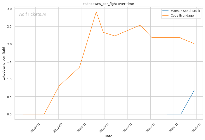 Brundage's wrestling could pose problems if he can secure takedowns, but his tendency to keep his head on the outside during shot attempts makes him vulnerable to being sprawled on and potentially caught in front headlocks. Abdul-Malik has shown solid defensive grappling awareness, particularly in his fight against Todorovic where he maintained composure in a leg entanglement position.