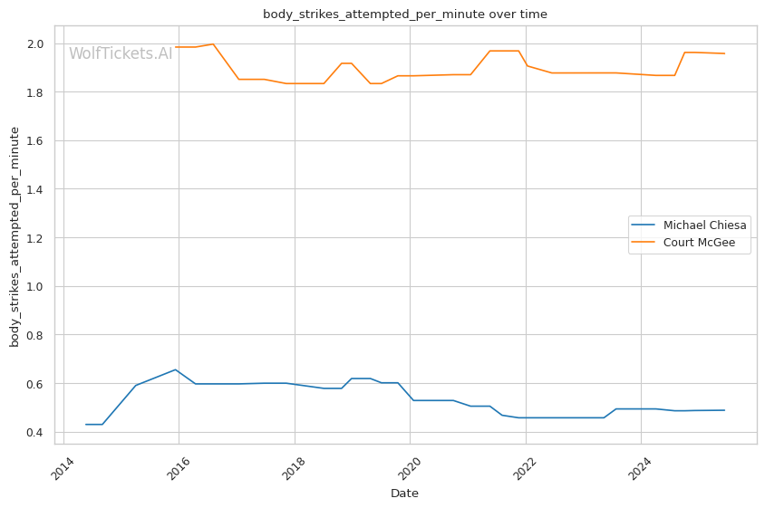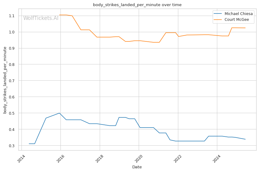 | Body Strikes Landed per Minute | 0.338 | 1.023 | 0.827 | |